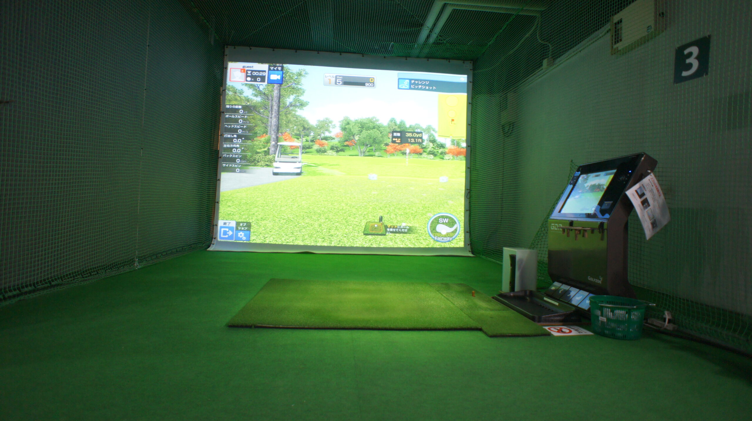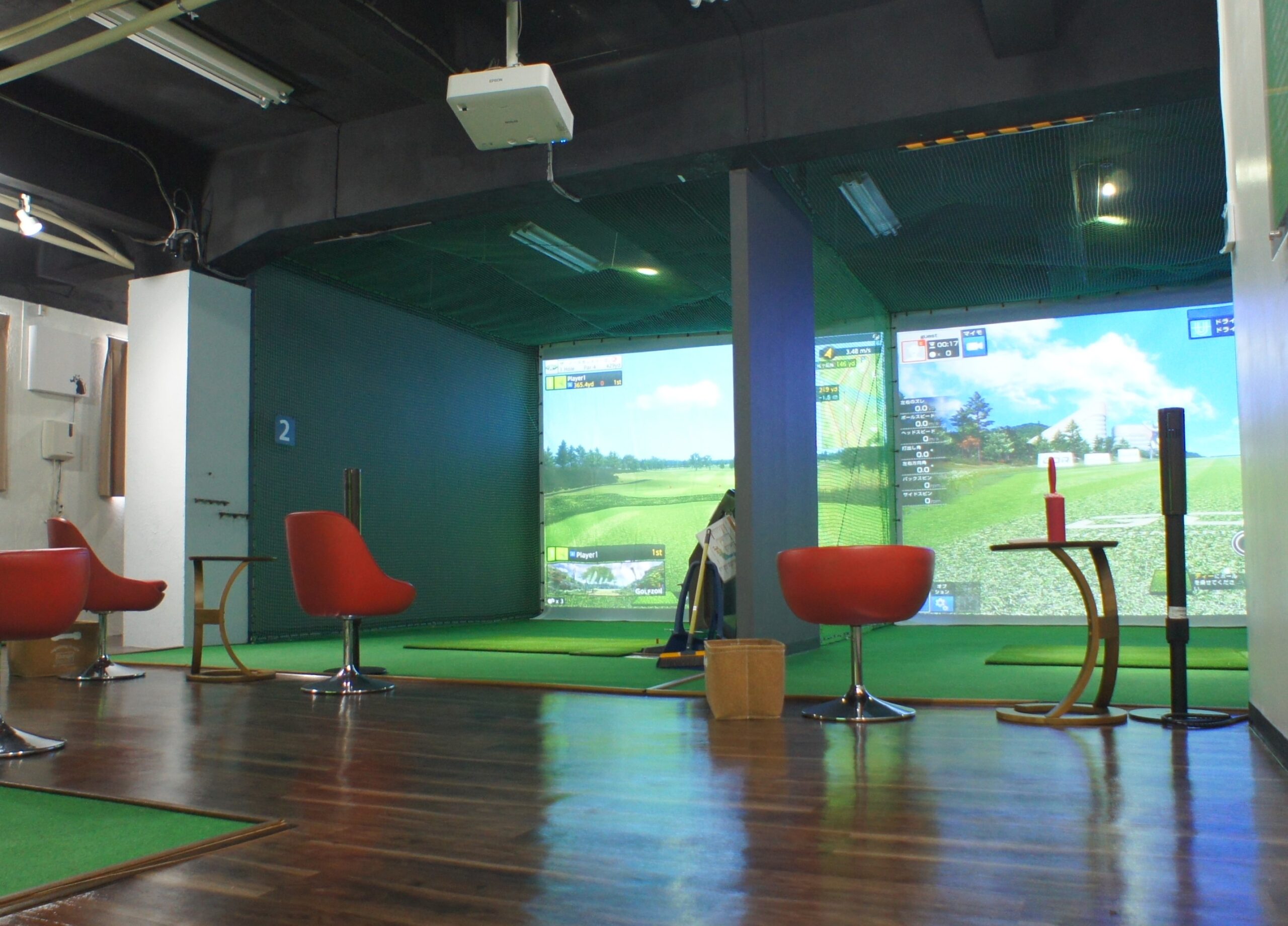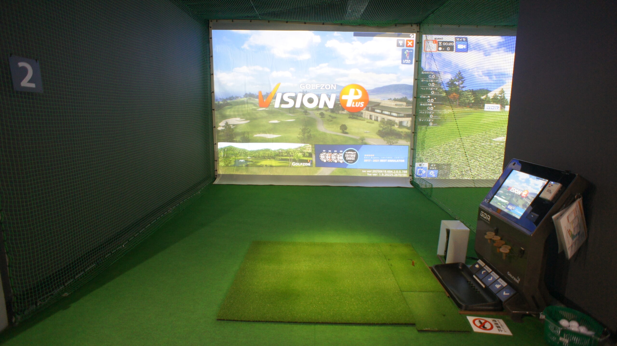 2番打席は一人練習用ゴルフシミュレーター GDR だけでなく、ラウンドも可能なGOLFZON VISION PLUSも搭載しています。
